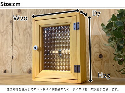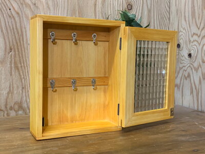 キーケース チェッカーガラス扉 フック付き 20×7×25cm ナチュラル 角型 木製 ひのき ハンドメイド オーダーメイド