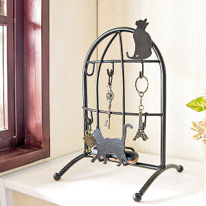 玄関に便利な黒猫キーフック黒猫のアイアンスタンドキーフック2匹の黒猫が印象的なスタンドタイプのキーフック。
